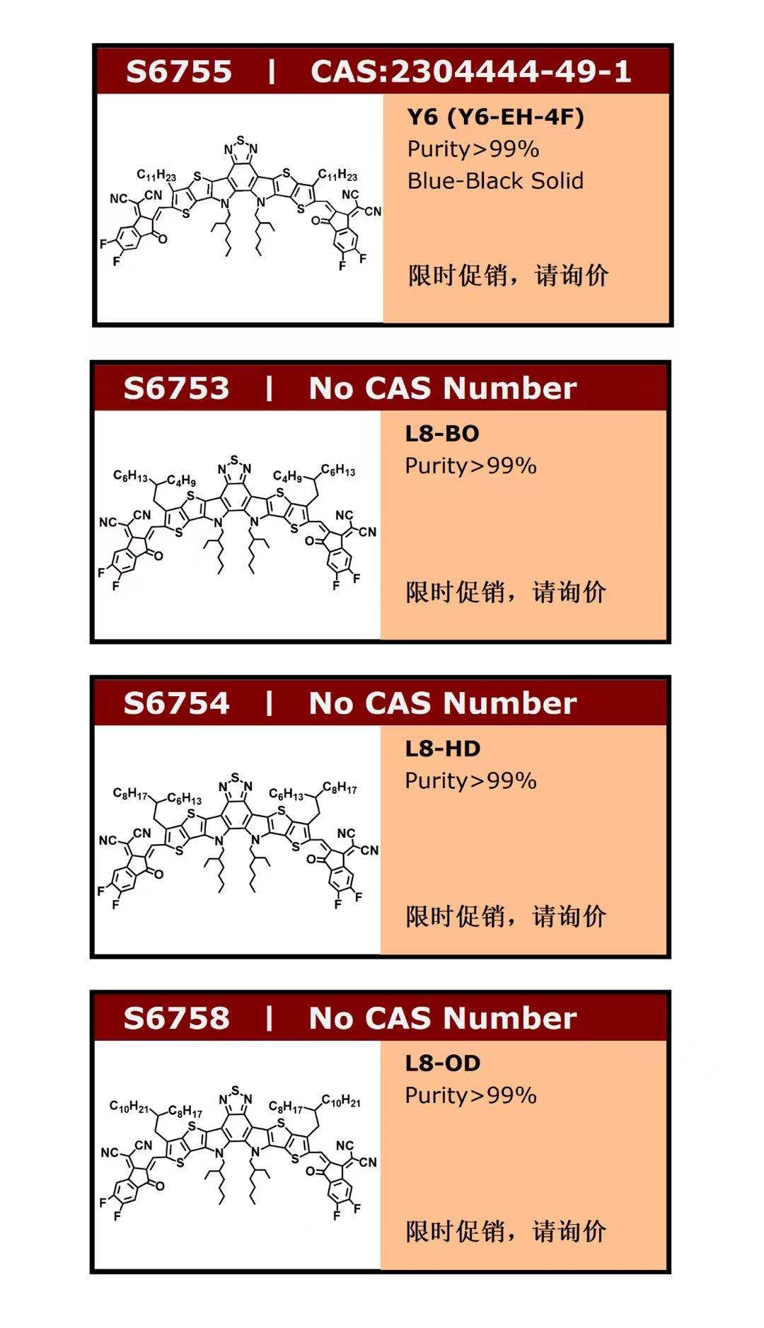 研究团队从聚集态调控角度对明星非富勒烯受体分子Y6进行优化设计,将噻吩β位进行支化烷基链取代,设计合成了一系列L8-R受体分子(图1)。Y6噻吩β位是调控分子堆积的核心位点,这是因为受体-给体-受体型非富勒烯受体分子的传输通道主要由末端基团的π–π堆积提供,中间核噻吩β位在正交方向上能对p-p堆积进行有效调控。通常情况下,支化侧链修饰会减弱分子堆积,但由于Y6分子的香蕉型构型,支化侧链修饰可以平衡主链堆积与侧链作用,获得新型优化的分子堆积模式(图2)。L8-R系列分子的堆积系数与π–π堆积距离均获得提升。此外,L8-R分子呈现出三种π–π堆积模式,而Y6分子为两种。晶体堆积方式越多越有利于电荷的跃迁,形成更多的电荷传输通道。相关结果在单晶结构和器件性能上均得到充分论证。